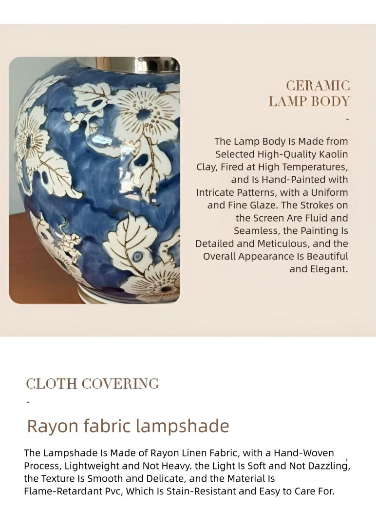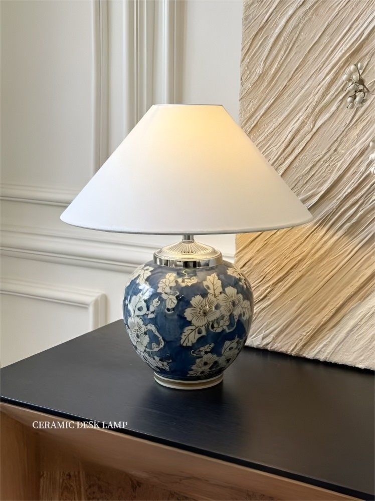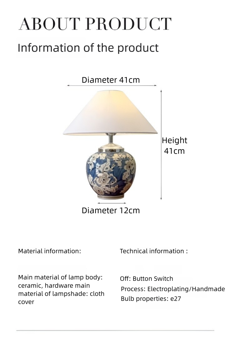 Material: Blaues und weißes Porzellan + Eisen + Stoffschirm